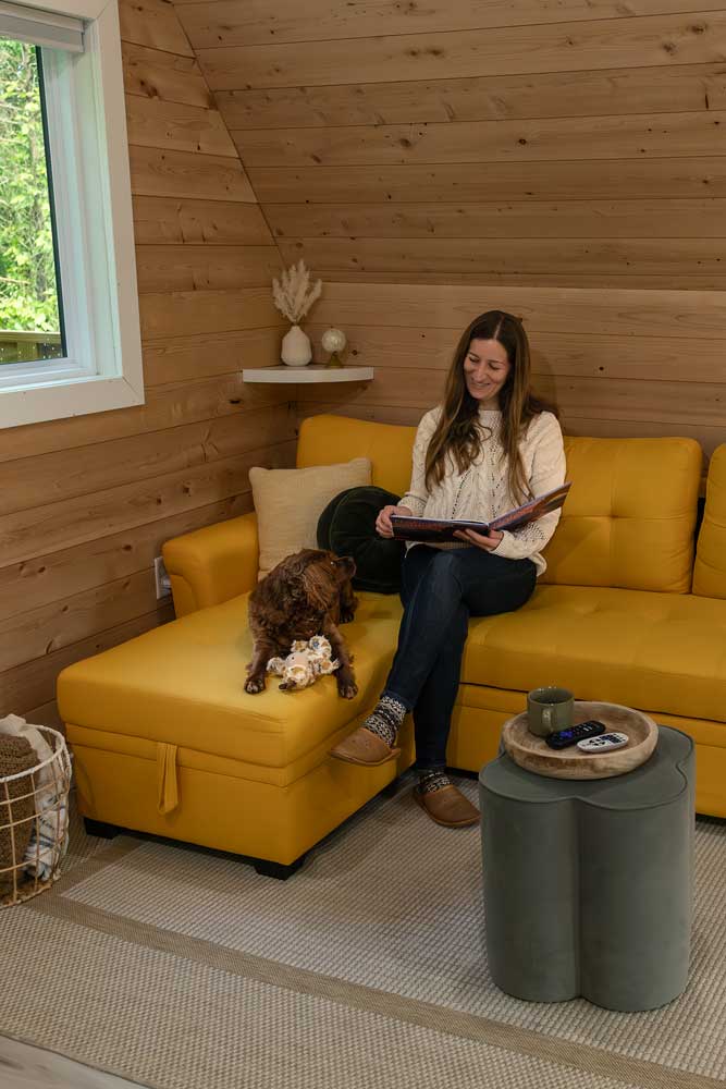 On my spring trip to Shawnee National Forest, I was accompanied by my dog, Loki, and we stayed at a charming treehouse in Marion called the Blonde. The cabin had all the amenities I could wish for, including a deck with a barbecue grill overlooking the forest, where I spent my mornings sipping coffee and my afternoons preparing dinner. There was also a fire pit and a covered hot tub—perfect for relaxing after a day of hiking. My favorite feature, though, was having my own private nature trail right outside the cabin.